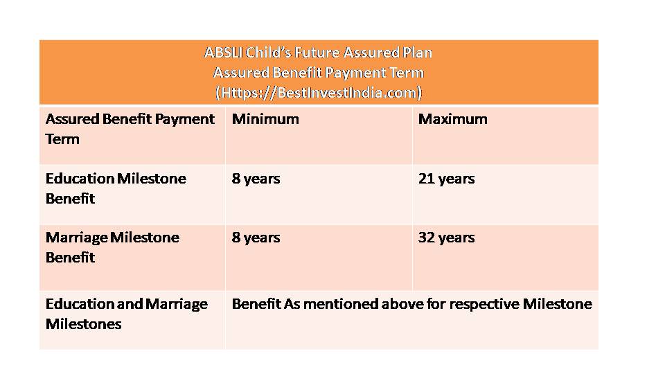 The Maturity Benefit shall be the amount of Assured Benefit payable at the end of the Policy Term( as described in the education milestone payment table.